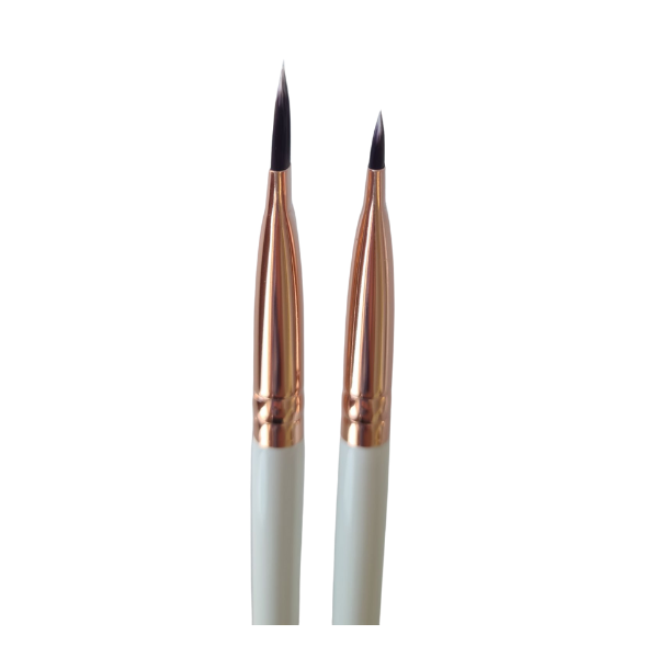 Nuestra nueva brocha de cortes es muy delgada y precisa, la brocha perfecta para realizar diferentes cortes en el párpado, desde los más clásicos estilos como un semi cut crease glam hasta los cortes más artísticos.