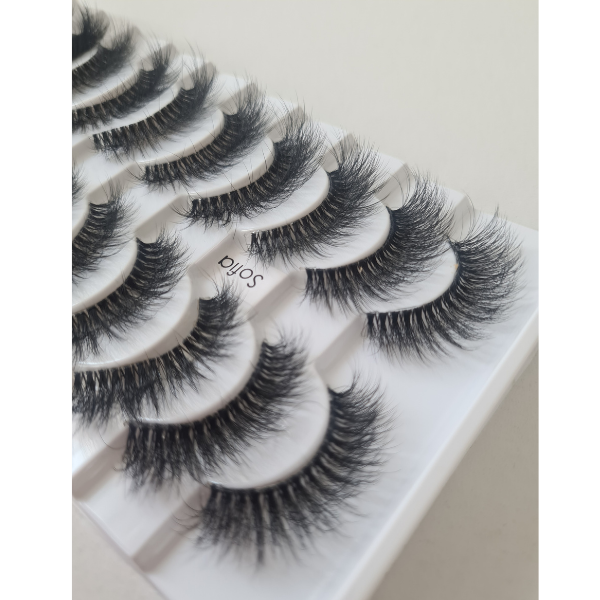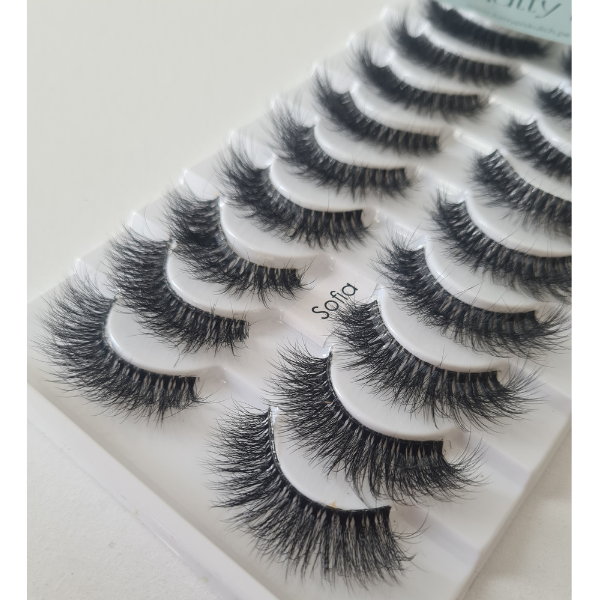 Pestañas de tamaño grande y dramático que tienen un acabado super rizado. Sofia da un efecto de mirada abierta/ojo grande.
