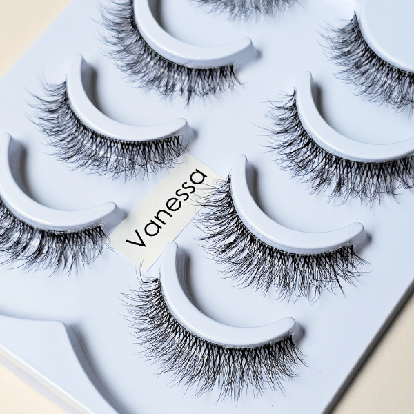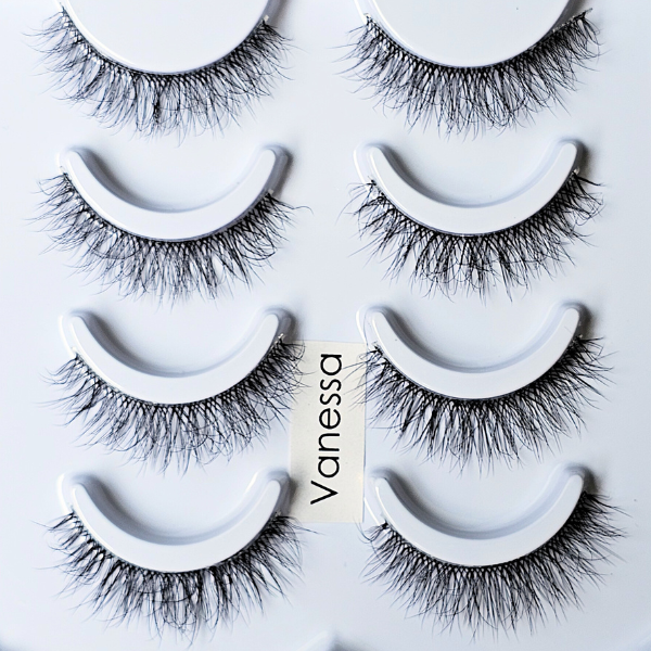 Pestañas de tamaño pequeño a mediano con realce natural y super rizadas. Vanessa da un efecto de mirada abierta/ojo grande.